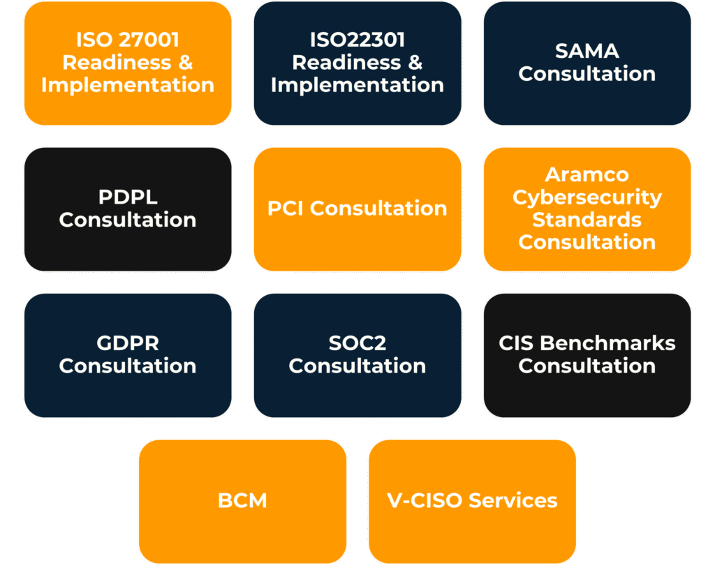 Meet the Gulf’s toughest cybersecurity standards with confidence. Our GRC services help you align with SAMA, PDPL, ISO, and more—securing your operations, protecting customer trust, and fortifying business continuity across your entire organization.