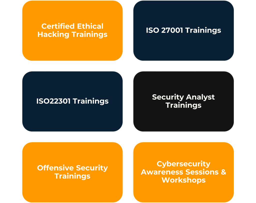 Empower your teams with globally recognized cybersecurity certifications and practical skills. From ethical hacking to ISO training, our tailored programs boost your organization’s cyber-readiness and strengthen defenses against today’s evolving threats.